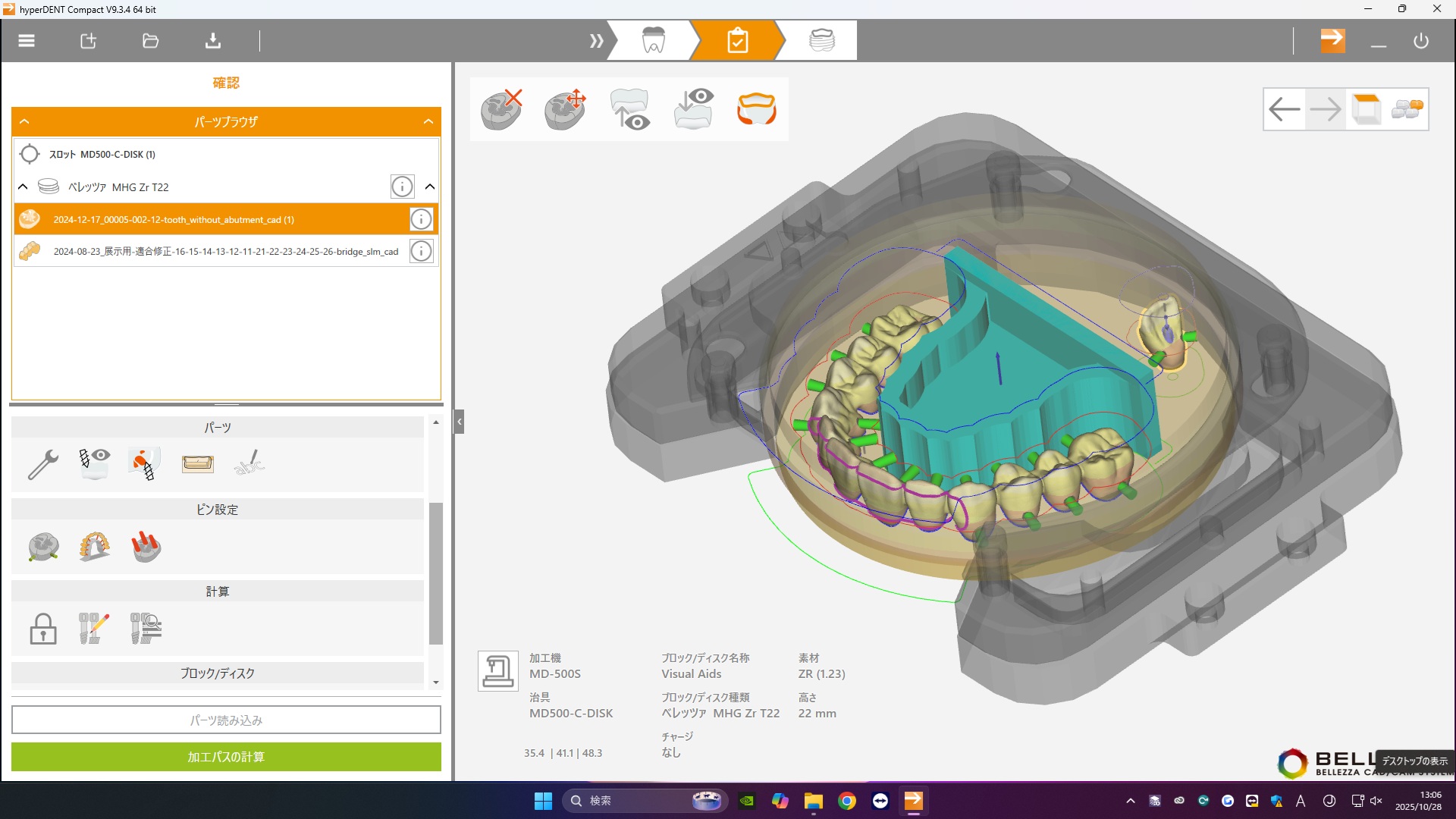 複雑な形状の補綴物も高い精度で加工ができるよう、独自の加工パスを歯科技工士とメーカーが共同開発。 わかりやすい画面で簡単に操作でき、丁寧な加工パスを迅速に計算し、精度の高い加工結果へと導きます。