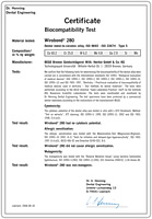 生体適合性試験証明書とは、第三者認証機関がBEGO金属の安全性を評価し、 その結果を証明したものです。 成分や細胞毒性、皮膚刺激性とアレルギー感作性の試験結果などが記載されています。